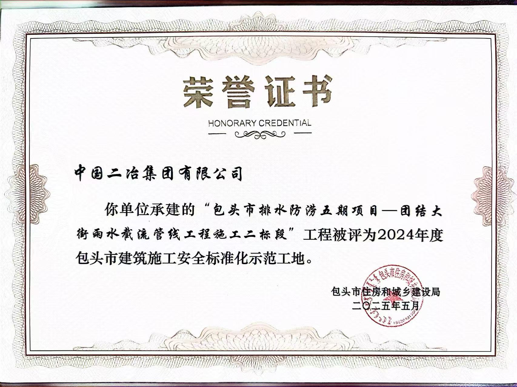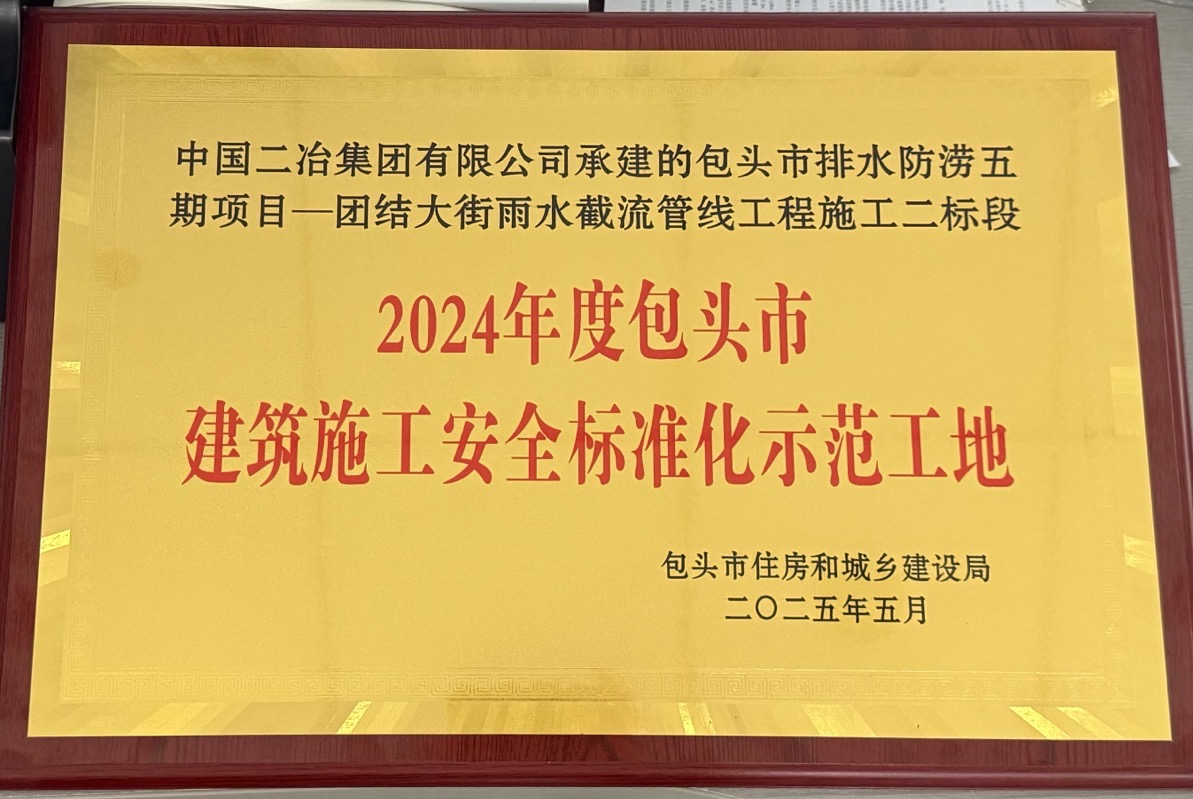 近日,包頭市住房和城鄉建設局公布2024年度市級標準化工地評選結果,由市政分公司承建的包頭市排水防澇五期項目——團結大街雨水截流管線工程施工二標段項目憑借高標準的安全文明施工、精細化的工程管理和綠色環保的施工理念,成功獲評“包頭市建筑施工安全標準化示范工地”稱號,成為分公司標準化建設的標桿項目。