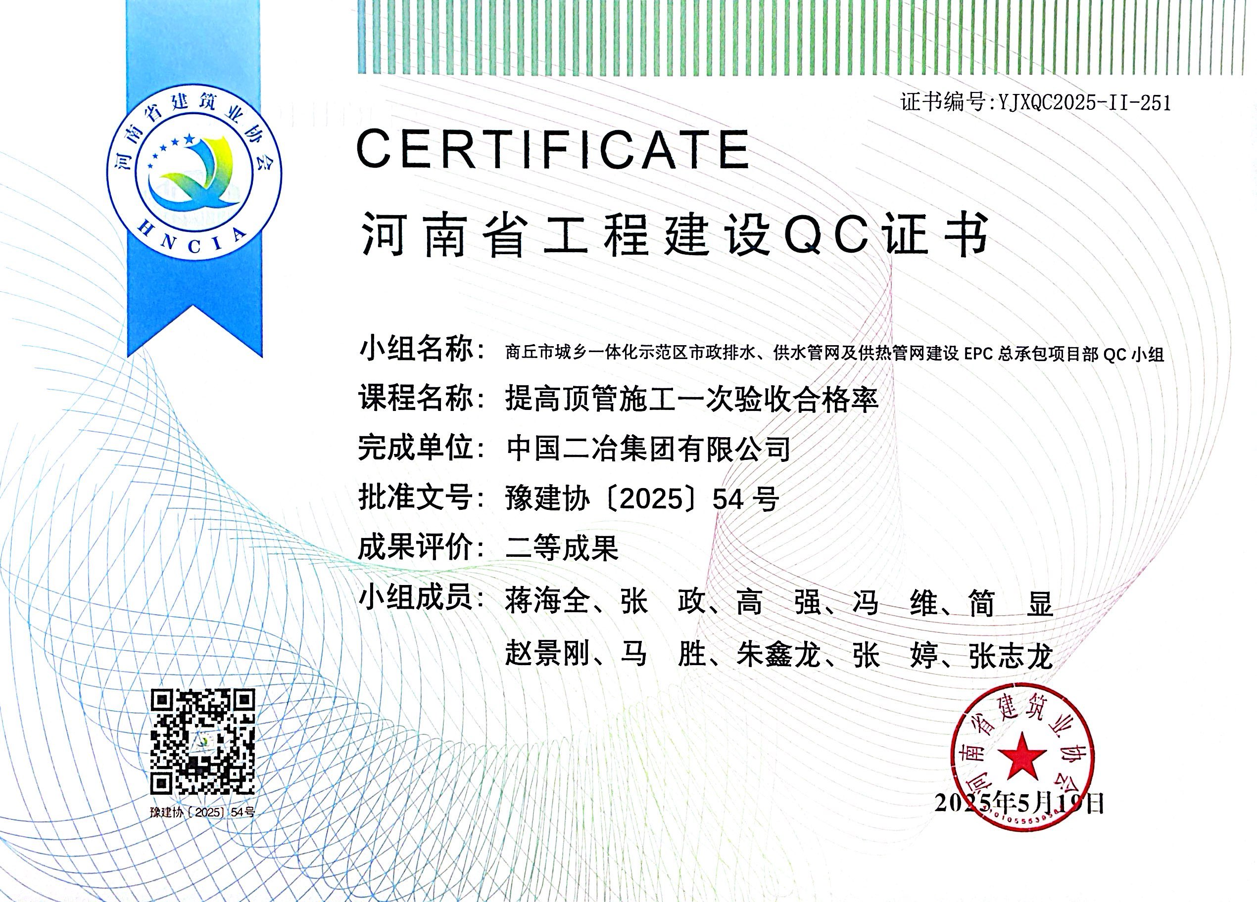 近日,省建協(xié)公布了2025年河南省工程建設(shè)質(zhì)量管理小組活動(dòng)成果評(píng)價(jià)(QC評(píng)價(jià))結(jié)果,中國二冶集團(tuán)中原分公司申報(bào)的《提高頂管施工一次驗(yàn)收合格率》《提升靠近地鐵側(cè)深基坑逆作法施工效果》《提高建筑物木結(jié)構(gòu)施工質(zhì)量驗(yàn)收一次合格率》榮獲二等成果評(píng)價(jià)。