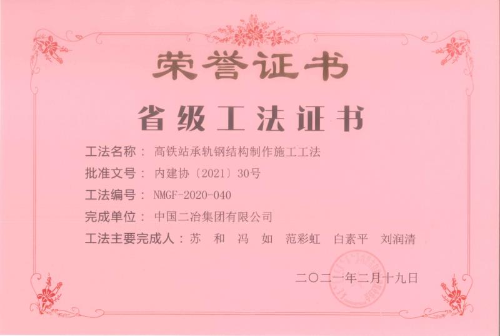 近日,中國二冶八項工法被內蒙古建筑業協會評為省部級工法,公司工法成果數量再創新高。