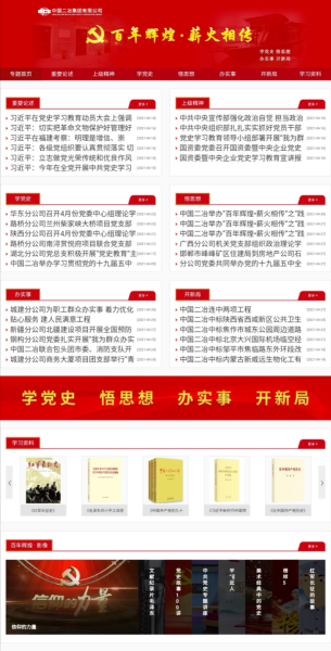 5月4日,公司黨群工作部特別策劃的“百年輝煌·薪火相傳”專題網(wǎng)頁正式上線,為深入學習宣傳貫徹習近平新時代中國特色社會主義思想,全面貫徹落實中國五礦、中冶集團黨史學習教育動員部署會相關(guān)要求,號召全體黨員干部學黨史、悟思想、辦實事、開新局,不斷增強抓好學習教育的思想自覺、政治自覺和行動自覺,高標準高質(zhì)量完成學習教育各項任務增開了新渠道。專題網(wǎng)站下設9個欄目,分別是“重要論述”“上級精神”“學黨史”“悟思想”“辦實事”“開新局”“黨史書架”“百年輝煌·影像”“百年輝煌·百花齊放”欄目。專題網(wǎng)站旨在打造思想引領(lǐng)、政策解讀、信息傳遞、成果展示、經(jīng)驗分享等為一體的黨史學習教育網(wǎng)上信息平臺,引導公司廣大黨員干部將思想和行動統(tǒng)一到中國二冶黨委部署上來,切實做到學史明理、學史增信、學史崇德、學史力行,一步一個腳印扎實推動公司各項事業(yè)向前發(fā)展,以優(yōu)異成績迎接建黨100周年!