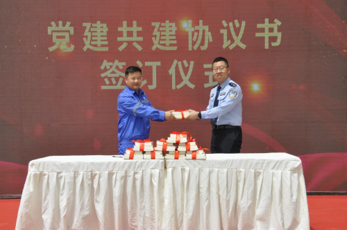 在辦實事、開新局環(huán)節(jié),公司新城佳園項目部黨支部與邯鄲市公安局峰峰礦區(qū)分局太安派出所簽訂黨建共建協(xié)議書,共同推進雙方黨建工作向縱深發(fā)展。隨后,公司黨群工作部副部長王志義為共建黨支部贈送紅色書籍。之后,全體人員集體宣誓,表示將繼承優(yōu)良傳統(tǒng)、立足崗位建功,鑄就精品、追求卓越,團結(jié)拼搏、開拓創(chuàng)新,樹一流形象、建一流工程,為峰峰礦區(qū)實現(xiàn)城市化建設(shè)貢獻力量。