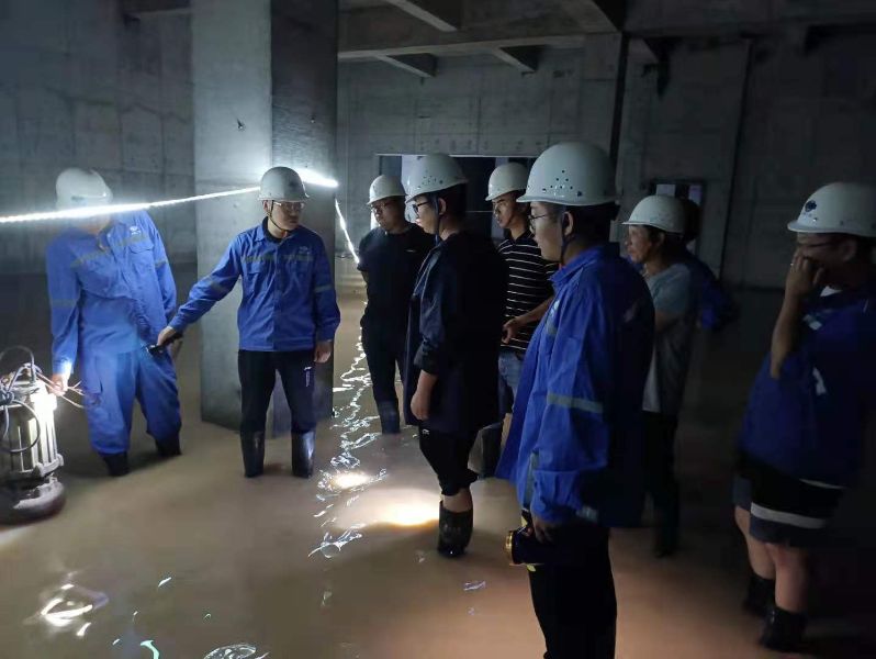 中原分公司周口貴和家園棚改A區項目部清理地下車庫施工現場積水