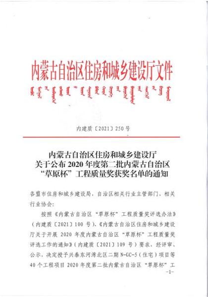 “草原杯”工程質(zhì)量獎(jiǎng)是內(nèi)蒙古自治區(qū)建筑工程最高獎(jiǎng)項(xiàng),歲末年終之際獲此殊榮,有效地推動(dòng)了企業(yè)品牌建設(shè),為公司實(shí)現(xiàn)區(qū)域滾動(dòng)發(fā)展奠定了堅(jiān)實(shí)基礎(chǔ)。
