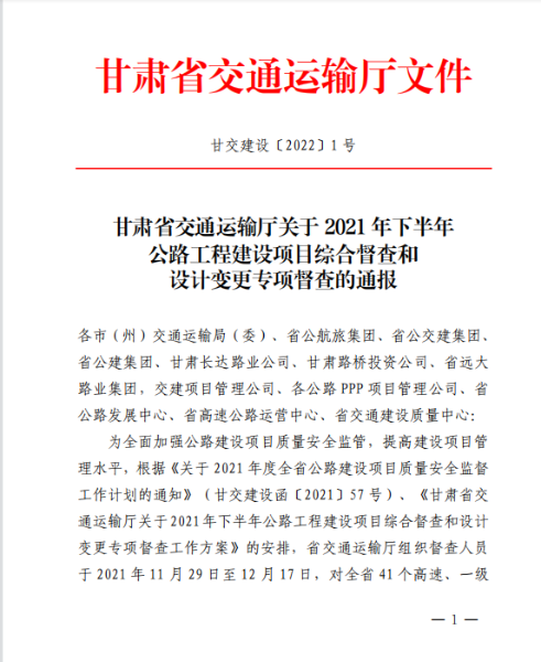 1月19日,甘肅省交通運輸廳發布《關于2021年下半年公路工程建設項目綜合督查和設計變更專項督查的通報》,對中國二冶景禮項目引進仰拱混凝土澆筑液壓自行式棧橋自帶仰拱曲面模板,較好地破解了施工的難題給予充分肯定,并給予通報表揚。