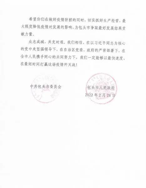 近日,中國(guó)二冶相繼收到了包頭市委、市政府、包頭昆河鎮(zhèn)政府、包頭前進(jìn)道辦事處、昆北街道辦事處和少先路街道辦事處的感謝信,感謝中國(guó)二冶在此次疫情防控戰(zhàn)役中高站位、講政治、講紀(jì)律,認(rèn)真貫徹落實(shí)市委市政府和上級(jí)單位有關(guān)疫情防控工作要求,不折不扣地執(zhí)行防控措施,在確保廣大員工生命安全的同時(shí),肩負(fù)起央企的責(zé)任和使命,用有力的支持和快速的行動(dòng),全力助力疫情防控,為包頭市疫情防控工作貢獻(xiàn)央企力量。