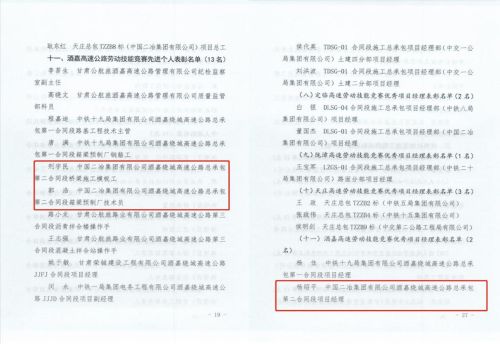 3月14日,由甘肅公航旅集團組織評選的2021年度省列重大工程示范性勞動技能競賽活動評比結果出爐,中國二冶酒嘉項目部從參與評選的多家參建單位中以優異的成績脫穎而出,被評為勞動技能競賽“先進集體”,項目經理楊紹平被授予酒嘉高速勞動技能競賽“優秀項目經理”,梁場負責人郭浩和模板工邢宇民被評為酒嘉高速公路勞動技能競賽“先進個人”。