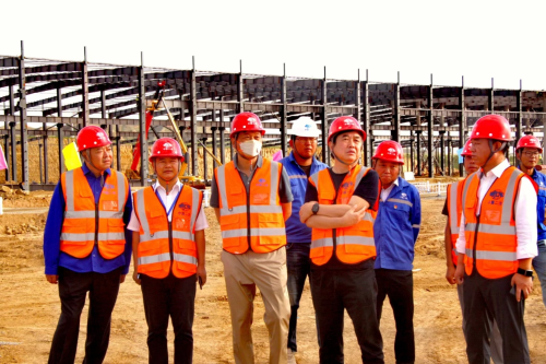 徐永鋒一行深入施工現(xiàn)場,詳細了解了項目鋼結(jié)構(gòu)及土建施工情況,聽取了項目部下一階段工作部署安排。徐永鋒指出,目前工程建設正處于黃金時期,項目部要克服疫情、強降雨給工程帶來的不利影響,加快推進工程建設速度,在保證安全以及質(zhì)量的同時,確保項目履約目標的實現(xiàn)。