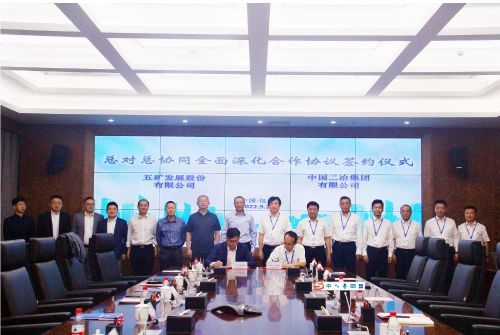 9月22日,中國二冶與五礦發展股份有限公司舉行戰略合作協議簽訂儀式,中國二冶黨委書記、董事長徐永鋒,副總經理劉寶世,五礦發展黨委副書記、總經理魏濤見證雙方簽約。中國二冶總會計師范大鵬,五礦發展副總經理張旭,代表雙方簽訂戰略合作協議。