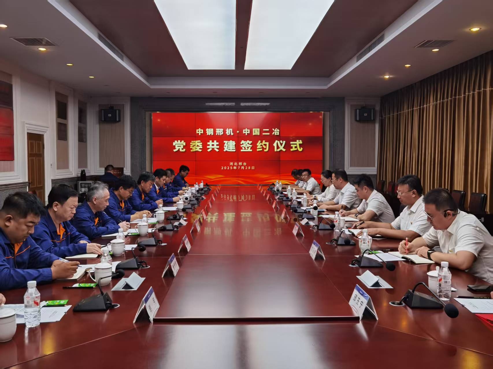 中國二冶是具有“四特四甲”資質(zhì)的大型綜合企業(yè)集團(tuán),中鋼邢機(jī)是目前引領(lǐng)行業(yè)發(fā)展的冶金軋輥專業(yè)研發(fā)制造企業(yè)。雙方均為世界500強(qiáng)企業(yè)的旗下成員,擁有近70年的發(fā)展歷史和享譽(yù)各自行業(yè)的輝煌業(yè)績。雙方在友好合作的歷史基礎(chǔ)上,此次再度牽手“中鋼邢機(jī)軋輥產(chǎn)業(yè)園優(yōu)化項(xiàng)目”,通過組織聯(lián)建、思想共融、資源共享,帶動共建雙方提升工作效能、優(yōu)化營商環(huán)境,以堅(jiān)強(qiáng)政治保障助力中鋼邢機(jī)新工廠建設(shè)項(xiàng)目的安全、優(yōu)質(zhì)、高效推進(jìn),為寶武智維、寶武重工加快打造國際領(lǐng)先的軋輥優(yōu)勢產(chǎn)業(yè)集群,鞏固中國軋輥技術(shù)國際領(lǐng)先地位,支撐中國寶武全球供應(yīng)鏈建設(shè)賦能。