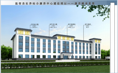 該項目位于新疆維吾爾自治區(qū)阿克蘇地區(qū)溫宿縣,項目總建筑面積2.09萬平方米。其中綜合樓總建筑面積5850平方米、康養(yǎng)樓總建筑面積6417平方米、康護樓總建筑面積 6479平方米、食堂總建筑面積1521平方米及配套附屬設施633平方米。